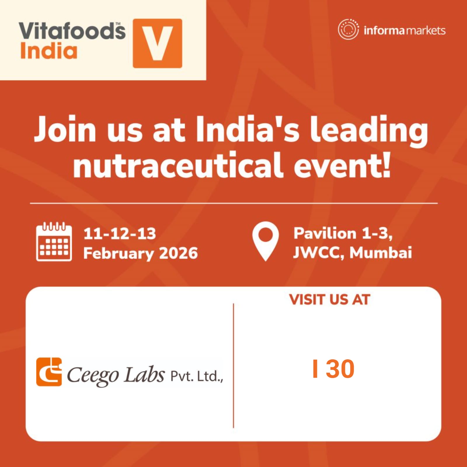 Ceego Labs Pvt. Ltd. is proud to participate in India’s leading nutraceutical exhibition, Vitafoods India 2026. Join us to explore our advanced manufacturing facilities, innovative formulations, and quality-driven solutions.